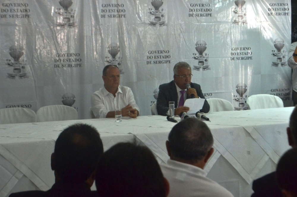 | Jackson e o vice-governador Belivaldo Chagas em anúncio no Palácio do Veraneio (Fotos: Portal Infonet) |