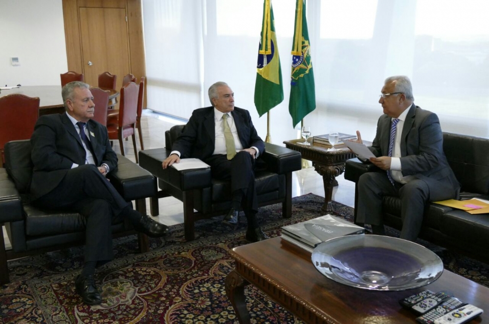 O governador Jackson Barreto foi recebido na tarde da quarta-feira, 3, pelo presidente da República Michel Temer no Palácio do Planalto. O chefe do executivo estadual estava acompanhado do secretário de Estado de Governo, Benedito Figueiredo, que é também vice-presidente estadual do PMDB e presidente da Fundação Ulisses Guimarães em Sergipe. Na pauta da reunião, a negociação das dívidas do estado de Sergipe com a União e com o BNDES e a retomada das obras estruturais do Governo Federal em Sergipe, a exemplo da duplicação da BR-101 e do aeroporto de Aracaju.