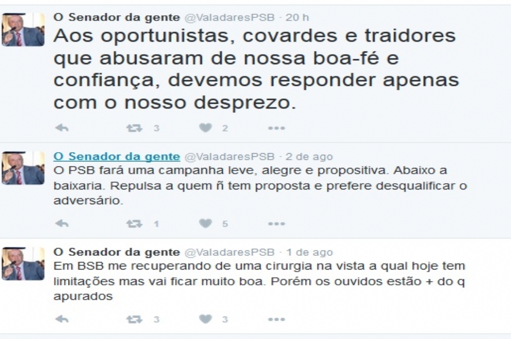 | Valadares usou a rede social para falar que partido fará campanha sem baixarias (Foto: Reprodução Twitter) |