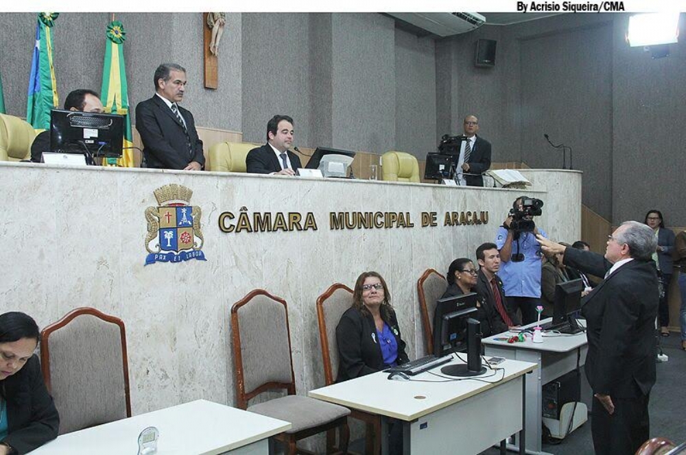 O presidente da Câmara Municipal de Aracaju, vereador Vinicius Porto (DEM) empossou na manhã desta quinta-feira,17, o suplente de vereador Jidenal Francisco dos Santos (PSDB). Ele é o último a ocupar cadeira dos dez vereadores afastados do Parlamento por ordem judicial, há cerca de quatro meses, acusados de usar indevidamente as chamadas verbas indenizatórias.