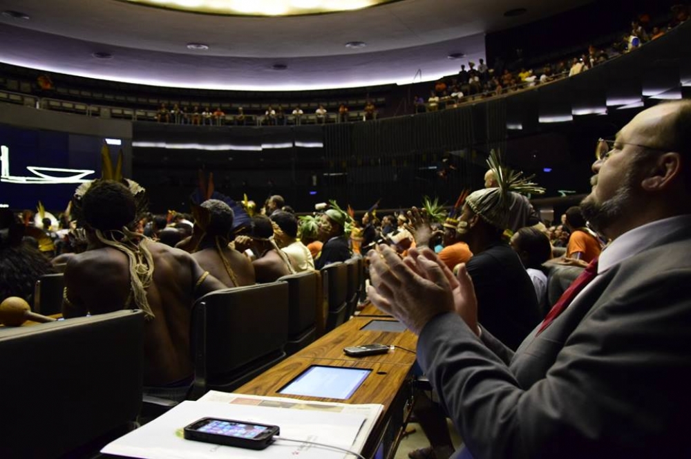 Na manhã de quinta-feira, dia 16, o deputado João Daniel participou da sessão solene comemorativa do Dia do Índio, realizada na Câmara. Centenas de indígenas lotaram o plenário Ulysses Guimarães, numa sessão histórica. Mais uma vez o deputado colocou-se contrário à PEC 215. “Nosso mandato foi construído no seio da luta popular, na luta pela terra e pela reforma agrária, na defesa do povo pobre e excluído e não iremos, de maneira nenhuma, esquecer nossa origem e os índios brasileiros têm em nosso mandato um instrumento de luta na defesa de suas lutas e contra o agronegócio predador”, frisou.