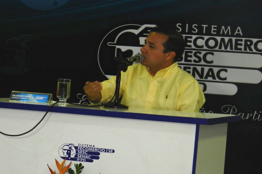 O deputado federal Valadares Filho (PSB), candidato da coligação ‘Aracaju segue em frente', encerrou, na noite desta terça-feira, 18, a sabatina dos candidatos à Prefeitura de Aracaju com os empresários que atuam na capital sergipana, evento promovido pelo sistema Fecomercio (Federação do Comércio de Bens, Serviços e Turismo do Estado de Sergipe), que contaria com apenas três dos cinco candidatos que disputam a Prefeitura de Aracaju nas eleições de outubro. Com a desistência de João Alves, a sabatina se resumiu a dois candidatos: Almeida Lima e Valadares Filho.