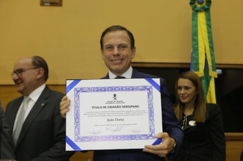 Na noite da última quinta, 26, Dória foi homenageado pela Assembleia Legislativa de Sergipe (Alese) com o título de Cidadão Sergipano. O projeto foi de autoria do deputado Augusto Bezerra (PHS), e aprovado pela Casa por unanimidade. “Sou filho de nordestinos. Meu pai nasceu na Bahia, e parte da minha família migrou para Sergipe. Os Dória, Seixas Dória, Costa Dória, têm origem aqui”.