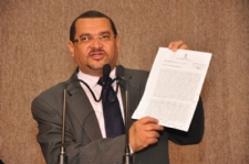 | Juvêncio exibe decisão do desembargador Luis Mendonça (Foto: Alberto Dutra) |