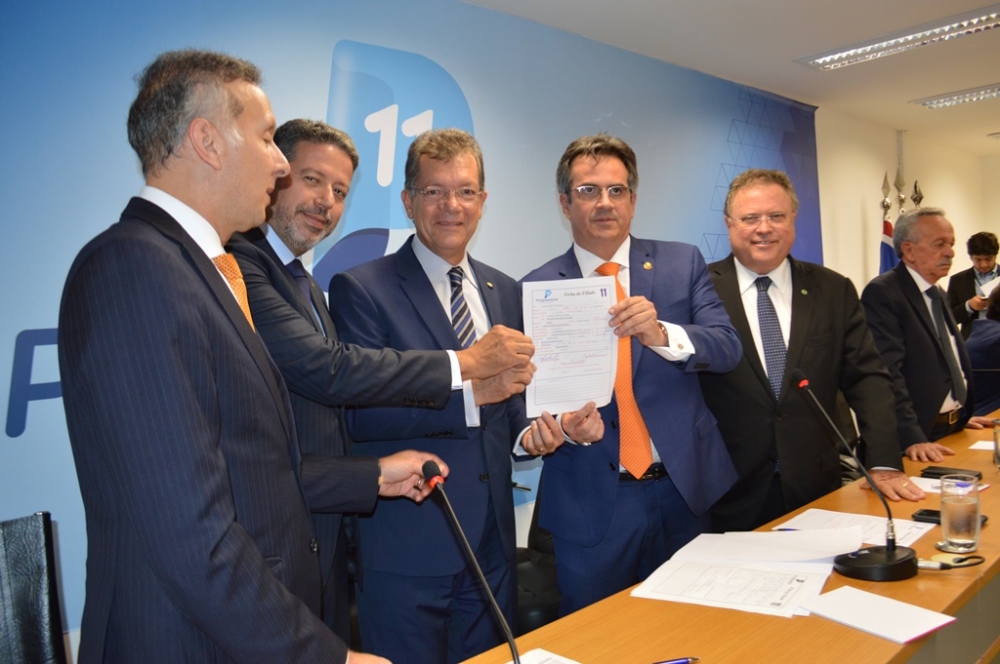 | Laércio Oliveira assina ficha de filiação ao Partido Progressista (Foto: Assessoria Parlamentar) |
