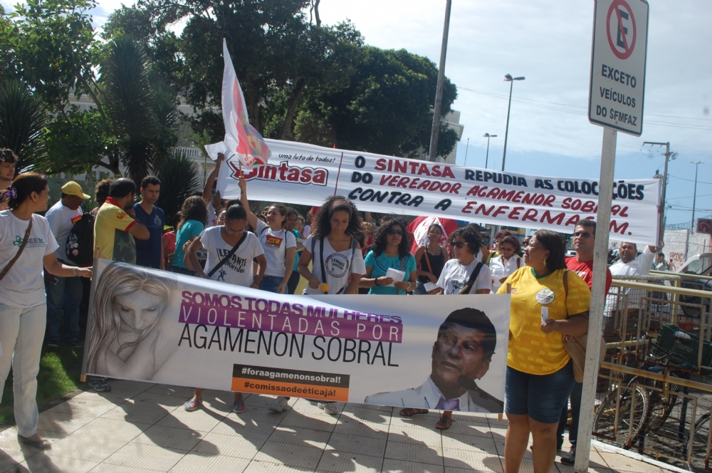 A manifestação contra declarações do vereador Agamenon Sobral (PP) – [de que médicos e enfermeiras estavam saindo do plantão para irem ao motel e fazendo sexo oral no local de trabalho] teve início na Praça General Valadão e em seguida os participantes saíram em caminhada até o prédio da Câmara, aonde fizeram uma ocupação. Gritando palavras de ordem, pediam respeito e a cassação do vereador.