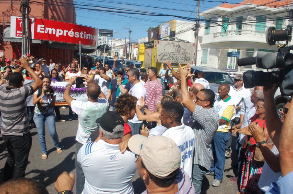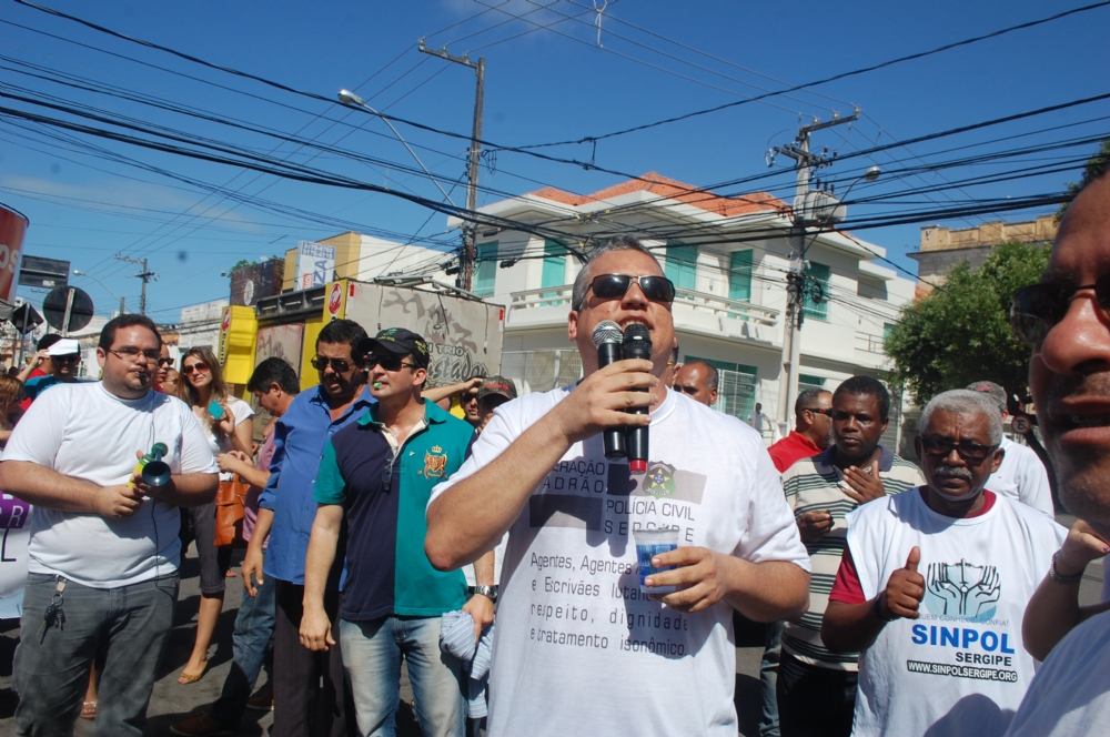 Na chegada à Câmara, os manifestantes se encontraram com uma passeata de policiais civis que estavam indo até a Assembleia Legislativa e se solidarizaram com o movimento contra o parlamentar. “Agamenon respeite as mulheres. Você fala demais, eu quero ver você falar da polícia. Vá nas delegacias ver se os delegados estão trabalhando”, afirma Antônio Moraes, presidente do Sindicato dos Policiais Civis de Sergipe.