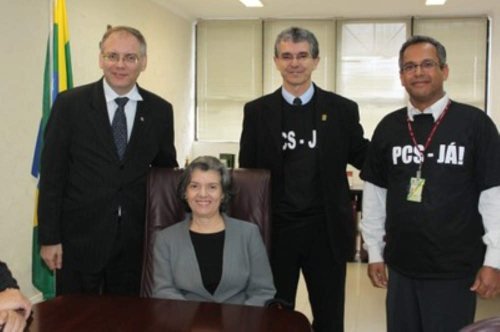 A ministra do Tribunal Superior Eleitoral (TSE) Cármen Lúcia ao Tribunal, recebeu na manhã desta terça-feira, 17, na sede do Tribunal Regional Eleitoral de Sergipe, representantes do Sindicato dos Servidores do Judiciário. Na ocasião, eles entregaram uma pauta de reivindicações, com destaque para o Plano de Cargos e Salários (PCS).