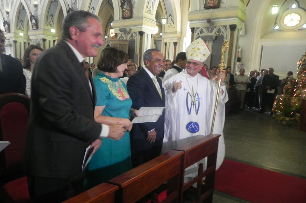 Autoridades e correligionários estiveram presentes à Catedral Metropolitana de Aracaju na manhã desta terça-feira, 1º, para prestigiar a missa em ação de graças pela posse do prefeito João Alves Filho (DEM). A posse do prefeito eleito ocorrerá no final desta tarde, no auditório do Tribunal de Justiça, em Aracaju. A cerimônia foi presidida pelo arcebispo de Aracaju, Dom José Palmeira Lessa. O prefeito eleito esteve acompanhado pela primeira-dama, a senadora Maria do Carmo Alves, e do vice-prefeito, José Carlos Machado.