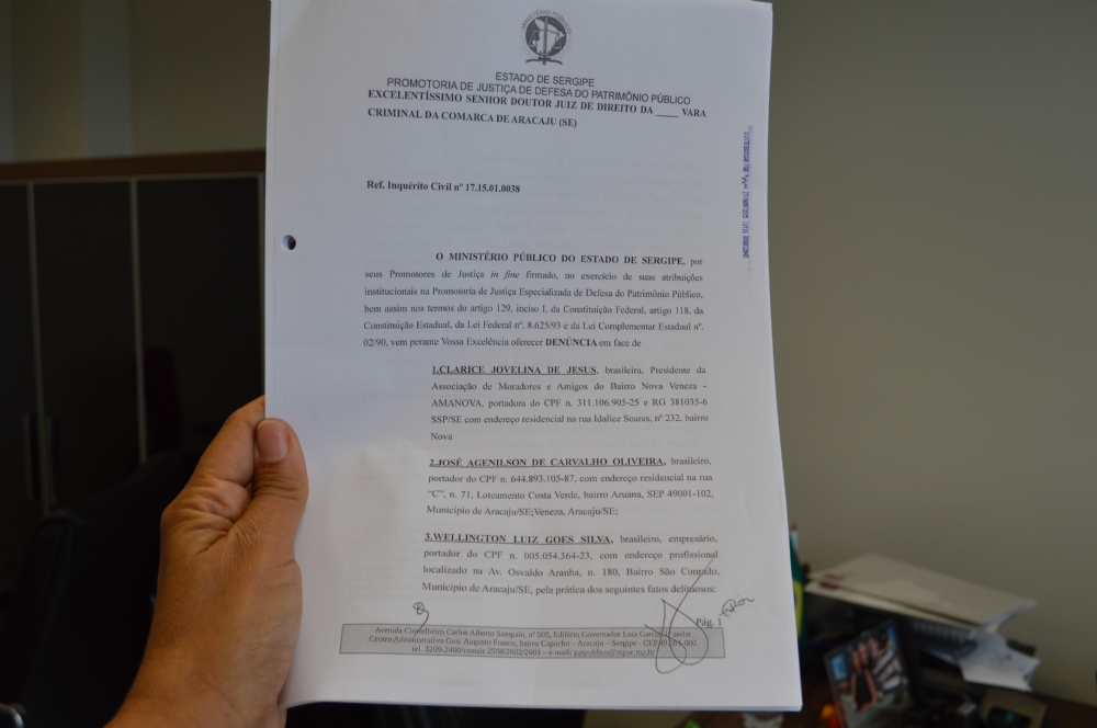 O promotor do Controle Externo da Atividade Policial do Ministério Público Estadual, Jarbas Adelino detalhou na manhã desta segunda-feira, 18, à imprensa, a denúncia oferecida pelo MPE contra três representantes da Associação Amanova, localizada no bairro Veneza, que recebeu R$ 2 mil e 200 em verbas de subvenção dos deputados Augusto Bezerra (DEM), Paulinho das Varzinhas (PTdoB) e Susana Azevedo (PSC). Desse montante, R$ 940 mil por indicação de Augusto Bezerra. Foram presas na manhã desta segunda-feira, 18, duas pessoas dessa associação: Clarice Jovelina de Jesus e José Agenilson de Carvalho Oliveira. Wellington Luiz Goes Silva está foragido