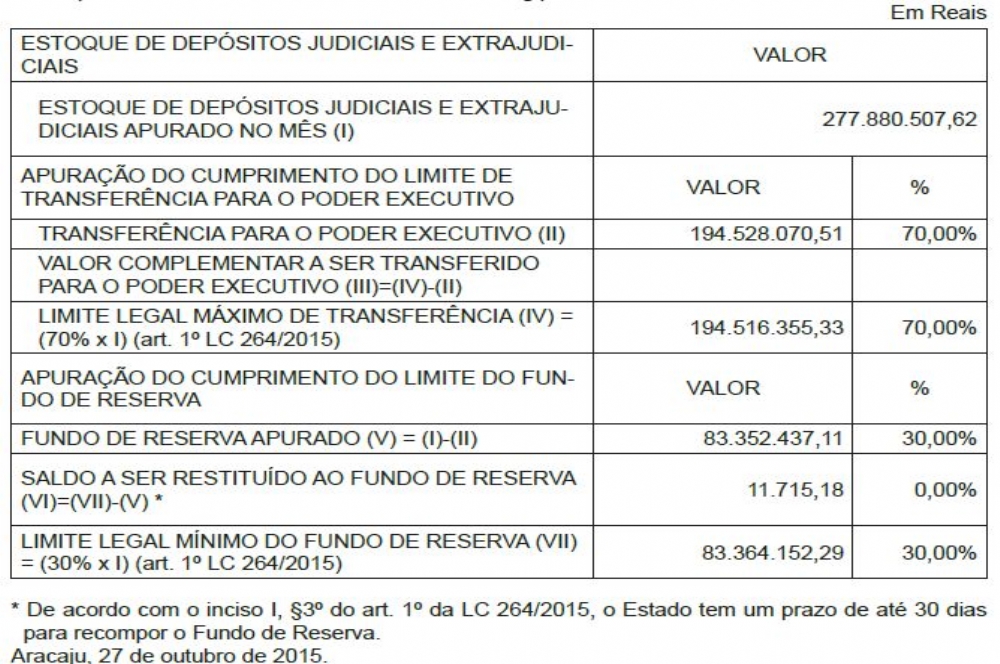 Segundo o deputado Geórgeo Passos, “O Estado hoje vive refém do depósito judicial, sempre a desculpa é essa: que a Receita não está se comportando compatível com as despesas e precisam dos depósitos judiciais e depois de uma decisão judicial, ficaram impedidos. O Banco do Brasil, desde quando foi sancionada a lei, não liberou um centavo porque não concordou com a lei e o Estado não tomou nenhuma providência. No Banese, se a liminar for cassada hoje pelo presidente do Tribunal de Justiça, pouco efeito vai fazer porque o Estado já retirou 70% que lhe eram permitidos, dados da própria Secretaria da Fazenda com o Banese, apontam pra isso.