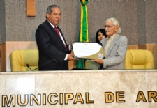 O homenageado recebeu o Título de Cidadania Aracajuana das mãos do presidente da Casa, Emmanuel Nascimento, que revelou aos convidados que durante a entrega de título a Câmara também é homenageada, por se tratar de um momento que reúne a população aracajuana.
