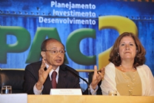 O ministro das Cidades, Márcio Fortes, fala, ao lado da coordenadora-geral do PAC 2, Miriam Belchior / Foto: ASN