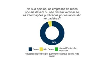 Nesse sentido, 84% dos brasileiros que usam ou já usaram redes sociais avaliam que a criação de uma lei de combate às fake news vai contribuir para a redução da quantidade de notícias falsas nessas plataformas. Os dados também mostram que 66% dos usuários sabem que o Congresso Nacional está debatendo uma proposta de lei para combater as notícias falsas em redes sociais.