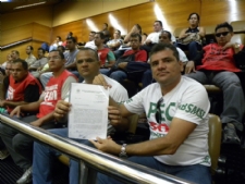 Como prometeram, representantes da Caixa Beneficente da Polícia Militar de Sergipe compareceram à Assembléia Legislativa de Sergipe na tarde desta segunda-feira, 22, para cobrar dos deputados a divulgação dos componentes da Comissão de Segurança daquela Casa. Sargento Vieira e Edgard Pereira mostram documento
