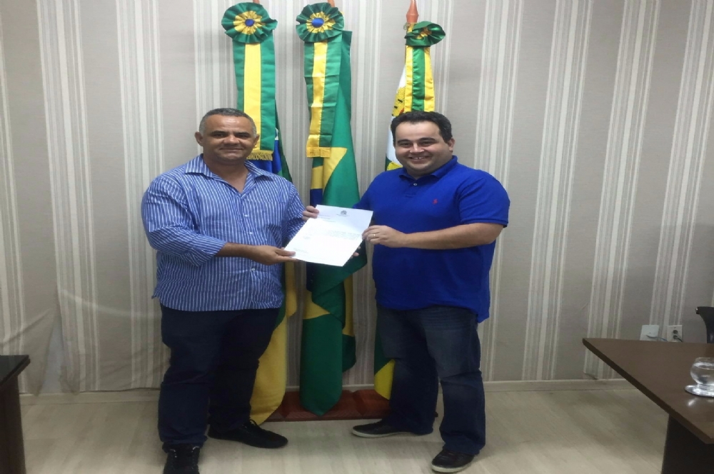 | Sargento Vieira recebe o ofício das mãos do presidente da Câmara Vinícius Porto (Foto: Divulgação WatsApp Espaço Militar) |