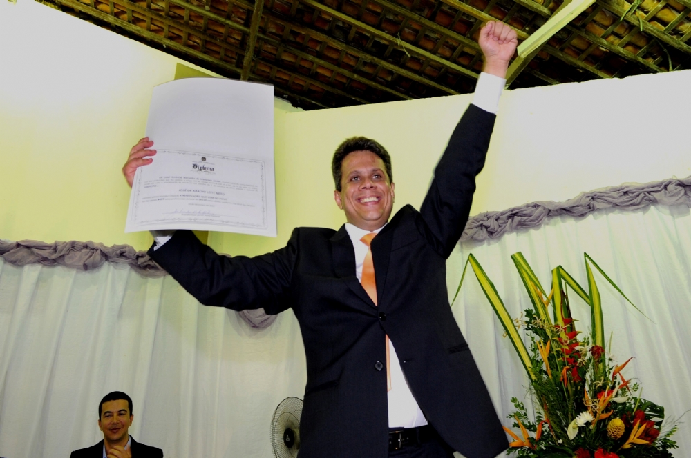 | Décio Neto recebe o diploma das mãos do deputado Zé Franco |