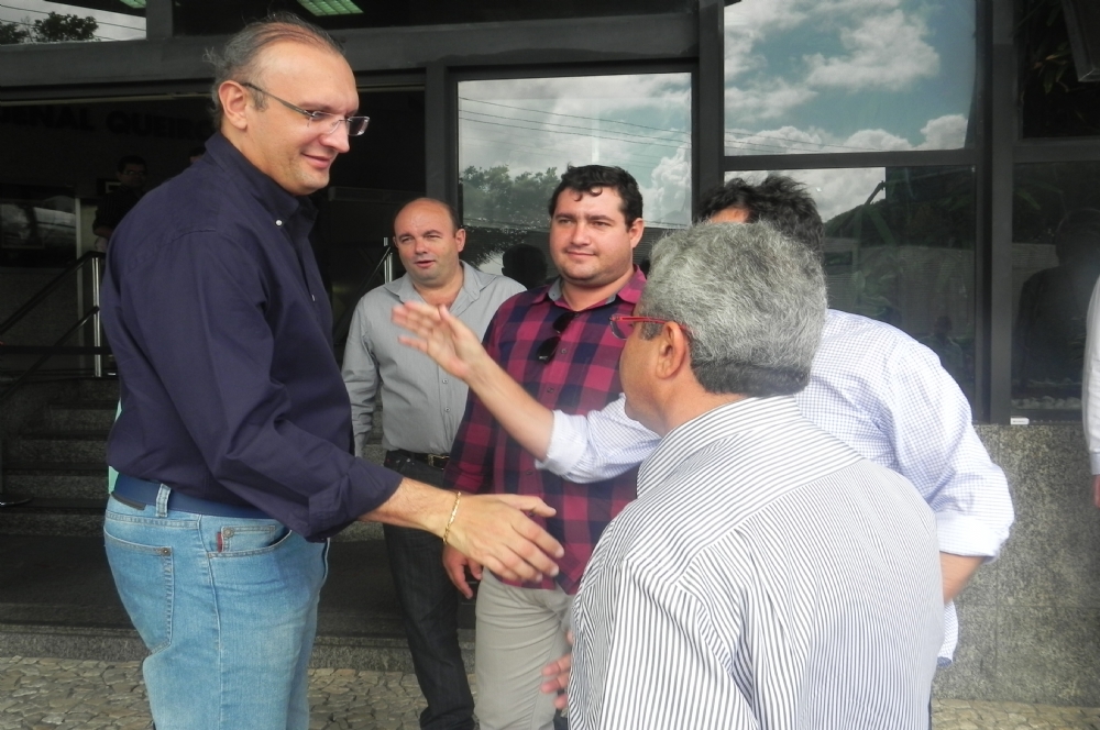 | Fábio Henrique cumprimenta prefeitos na porta da Assembleia (Fotos: Portal Infonet) |