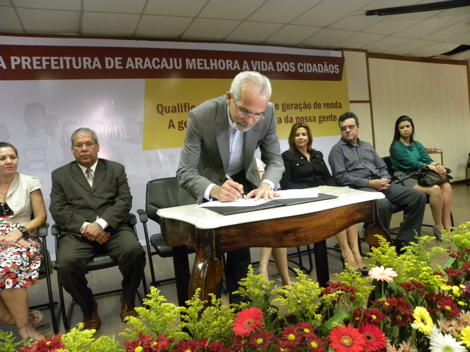 Em solenidade no auditório do Banese, o prefeito Edvaldo Nogueira e a presidente da Fundação Municipal do Trabalho (Fundat), Telma Pimentel fizeram a entrega de certificados aos 32 formandos em cursos da área da Construção Civil. Desses, 15 são mulheres. Na ocasião, o prefeito assinou Termo de Cooperação Técnica com a Ademi (Associação de Dirigentes de Empresas do Mercado Imobiliário) e a Associação Sergipana de Empresas de Obras Públicas e Privadas (Aseop). Edvaldo Nogueira anunciou a abertura de concurso público para o preenchimento de 158 vagas para professores.