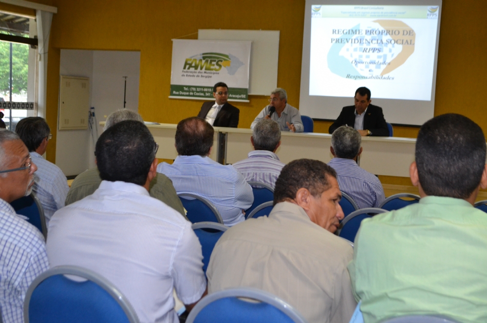 O regime próprio de previdência social para servidores públicos municipais foi a temática debatida em seminário promovido por entidades que têm como filiados prefeitos sergipanos. Alguns prefeitos enviaram assessores, mas outros fizeram questão de comparecer pessoalmente ao debate por considerar uma temática complexa. “Não estou inteirado sobre este sistema, vim justamente para buscar informações e ver o que for melhor para o município”, declarou o prefeito Valdir Bispo, do município de Santa Rosa de Lima.