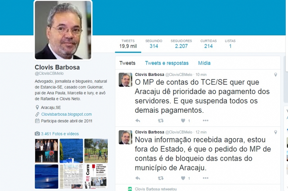 O procurador-geral do Ministério Público de Contas, José Sérgio Monte Alegre, pediu a intervenção das contas da Prefeitura de Aracaju por conta dos atrasos nos salários dos servidores. A informação foi confirmada pela assessoria do Tribunal de Contas do Estado de Sergipe (TCE/SE), que afirmou que o pedido já foi encaminhado ao presidente da casa, Clóvis Barbosa.