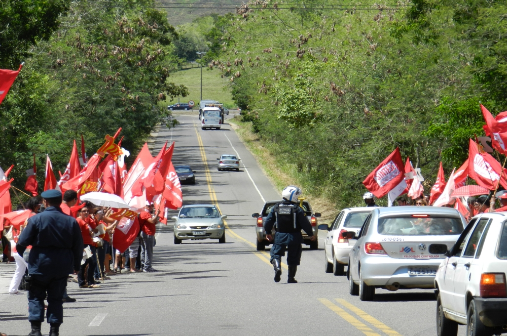 Os professores ocuparam um trecho da BR 101, no município de Rosário do Catete, por onde a comitiva presidencial passou, logo depois que a presidente Dilma Rousseff desembarcou no heliporto em Carmópolis e seguiu de carro para o canteiro da Vale, onde assinou contrato do Projeto Carnalita.