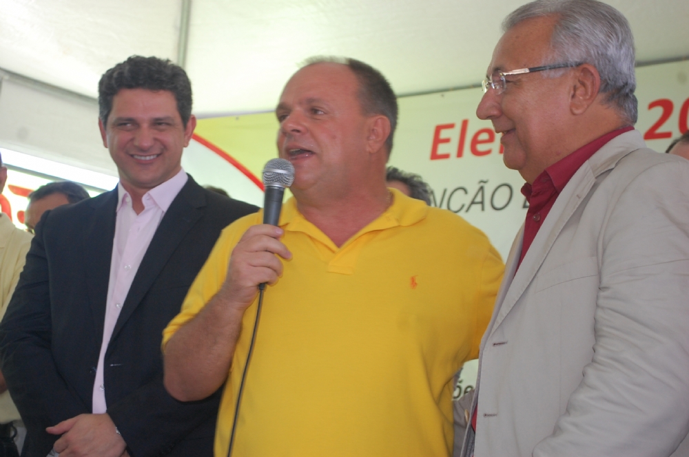| Belivaldo (ao centro) entre Rogério e Jackson: chapa majoritária (Fotos: Cássia Santana/Portal Infonet) |