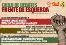 É com o objetivo de fortalecer as lutas do povo e possibilitar a formação para um maior enfrentamento político na defesa dos nossos direitos, que os partidos de esquerda PSOL, PSTU e PCB estão convidando todos os lutadores e lutadoras sociais para o Ciclo de debates da Frente de Esquerda, que ocorrerá nesta os dias 22 de setembro, 14 de outubro e 29 de novembro na Universidade Federal de Sergipe (UFS).