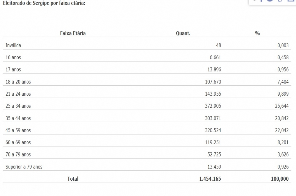 Essa faixa etária (16 a 20 anos) fica atrás numericamente apenas dos votantes com idade entre 30 e 40 anos, que representam quase metade do eleitorado Sergipano.