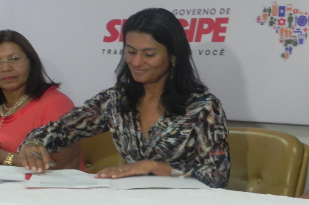 | Secretária Eliane Aquino durante assinatura de formalização para liberar recursos (Fotos: Portal Infonet) |