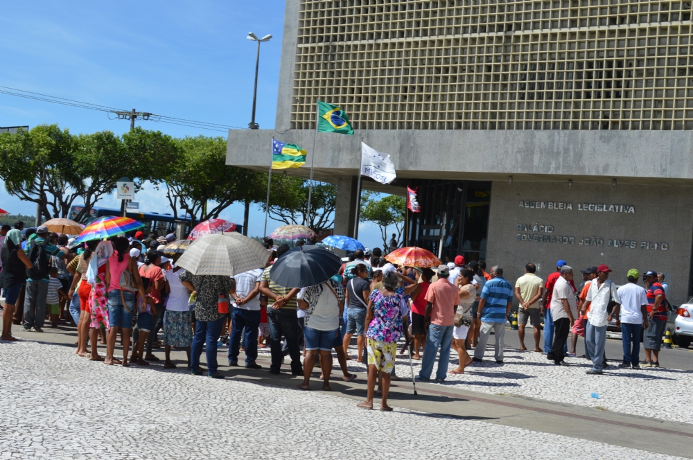 Gritando “queremos moradia, queremos moradia”, homens, mulheres e crianças solicitavam a todo instante a presença dos parlamentares. “Na Câmara Federal estamos contando com os deputados por Sergipe, João Daniel (PT) e Pastor Jony (PRB), viemos até aqui pedir o apoio dos deputados estaduais para a nossa luta, mas até agora nada, nenhum assessor veio até aqui falar com a gente. Cadê os deputados do PT?”, indaga acrescentando que a luta é para realizar o sonho da aquisição da casa própria.