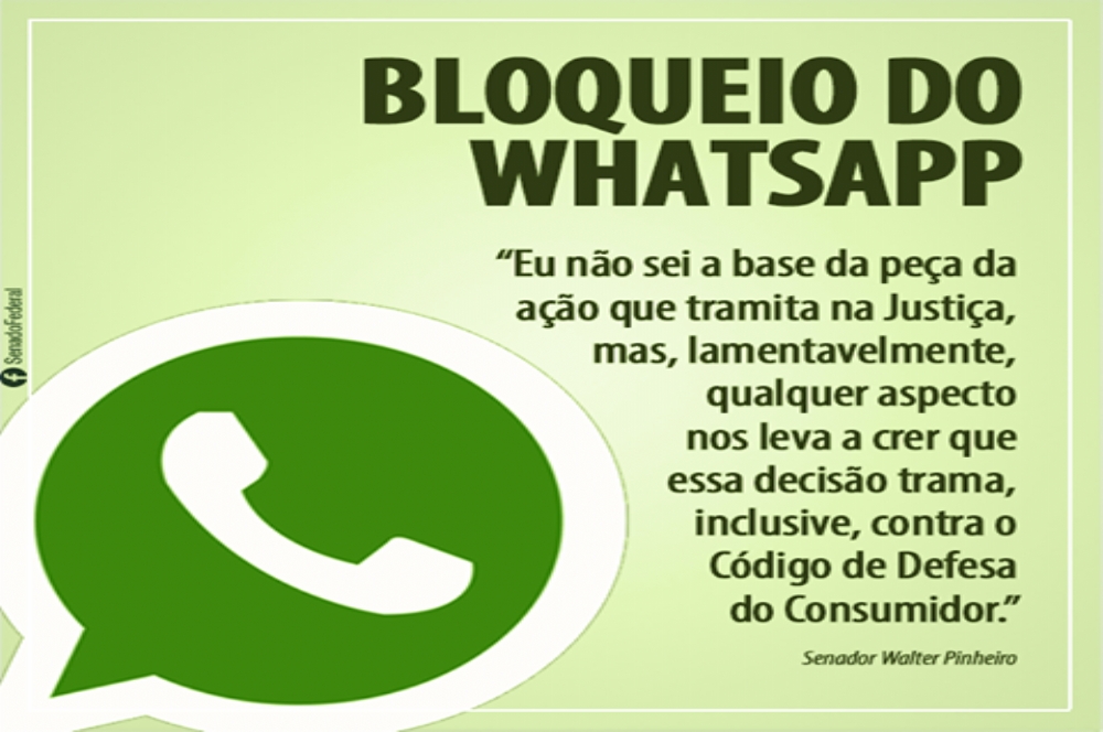 O senador Walter Pinheiro (PT-BA), membro da Comissão de Ciência e Tecnologia do Senado (CCT), comentou a decisão judicial de bloqueio do funcionamento do aplicativo WhatsApp em todo o território nacional por 48 horas, conforme decisão da 1ª Vara Criminal de São Bernardo do Campo por meio de uma medida cautelar.