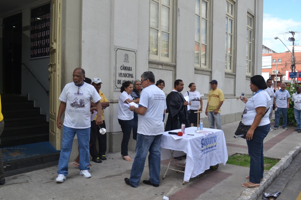 Representantes do Sindicato dos Servidores Públicos Municipais (Sepuma), realizaram um ato na porta da Câmara Municipal de Aracaju na manhã desta quarta-feira, 28. Na ocasião eles realizaram uma “missa figurativa” de oito dias pela exclusão do quadro de motoristas da Prefeitura de Aracaju.