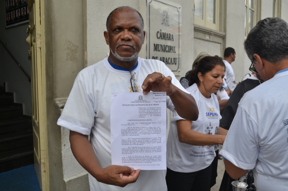 “No dia do anúncio do reajuste dos servidores, não foi apresentado o projeto a nenhuma categoria e só mandaram me entregar na terça-feira, 17. Na quarta-feira, 18 viemos à Câmara, usamos a tribuna e mostramos a situação aos vereadores, mesmo assim o projeto foi aprovado por seis”, explica o presidente do Sepuma, Nivaldo Santos.