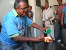 Os vereadores retornaram às atividades na manhã desta segunda-feira, 3, e não contavam com uma recepção diferente por parte do Sindicato dos Servidores Públicos do Município de Aracaju (Sepuma). Representantes da entidade lavaram as escadarias da Câmara com creolina, sabão em pó, desinfetante e muita água. Incensos foram acesos com o objetivo de “exorcizar a casa do povo”.