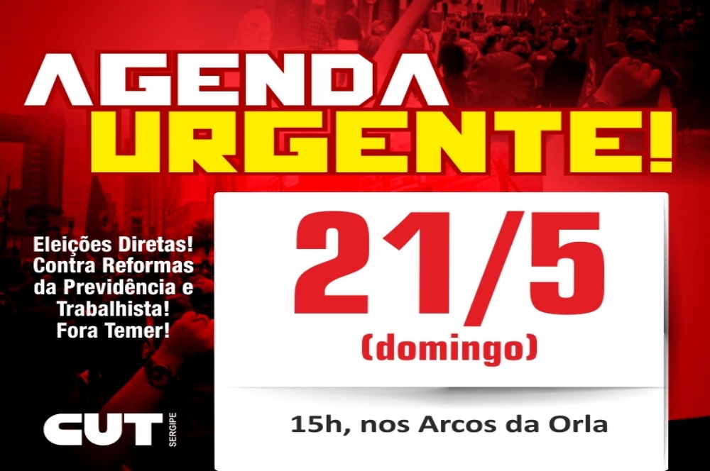 Sergipanos farão um ato no próximo domingo, 21, em favor do movimento 'Eleições Diretas já', 'Fora Temer' e contra as Reformas da Previdência e Trabalhista. A concentração se dará nos Arcos da Orla de Atalaia a partir das 15h. O ato está sendo encabeçado pela Frente Brasil Popular.