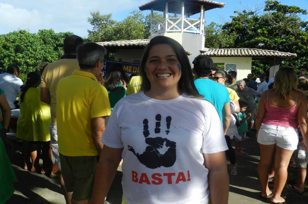 Segundo a representante do movimento ‘Muda Brasil’, Bianca Maynard, os brasileiros não vão parar de lutar por um país melhor. “A mobilização foi pelas redes sociais, WhatsApp e adesivaços em sinais. “Está sendo importante esse ato porque a própria Dilma está se reunindo com os ministros em Brasília. A presidente está vendo que os brasileiros estão cansados de tudo. Os deputados estão de olho na sociedade porque sabem que nós estamos olhando eles. Mesmo que não se tenha um número grande de pessoas, a gente não para de lutar pelo Brasil”, afirma.