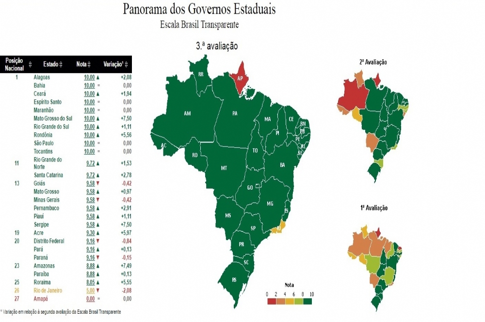 | Avaliação do Ministério da Transparência aponta que 24 estados e o DF obtiveram nota acima de 8 (Foto: Reprodução) |