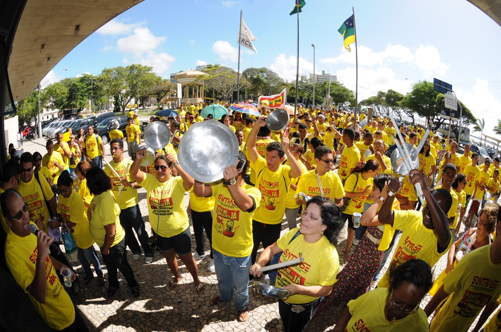 Antes da reunião que decidiu pelo fim da greve, os servidores realizaram um ‘panelaço’ na porta da Assembleia Legislativa de Sergipe com a finalidade de pedir apoio aos deputados estaduais no sentido de cobrarem ao Governo do Estado, o envio do projeto criando o Plano de Cargos, Carreira e Salários.