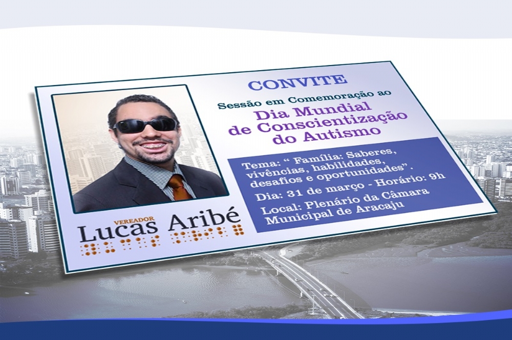 O Dia Mundial de Conscientização do Autismo é celebrado em 2 de abril e para comemorar a data será realizada uma Sessão Especial no plenário da Câmara Municipal de Aracaju nesta sexta-feira, 31 de março, às 9h. A sessão é resultado do requerimento do vereador Lucas Aribé (PSB).