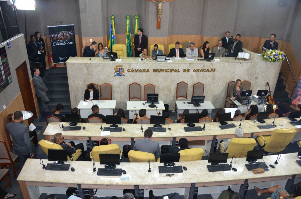 Os 70 anos do sistema Sesc (Serviço Social do Comércio) foi comemorado na manhã desta segunda-feira, 12, na Câmara Municipal de Vereadores de Aracaju, em sessão especial proposta pelo vereador Roberto Morais (SD). As homenagens foram marcadas pela apresentação do grupo musical Camerata Sesc, formado por jovens e criado a partir do projeto Roda Viva, mantido pela entidade para incentivar à produção cultural.