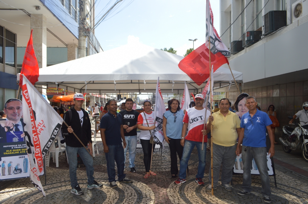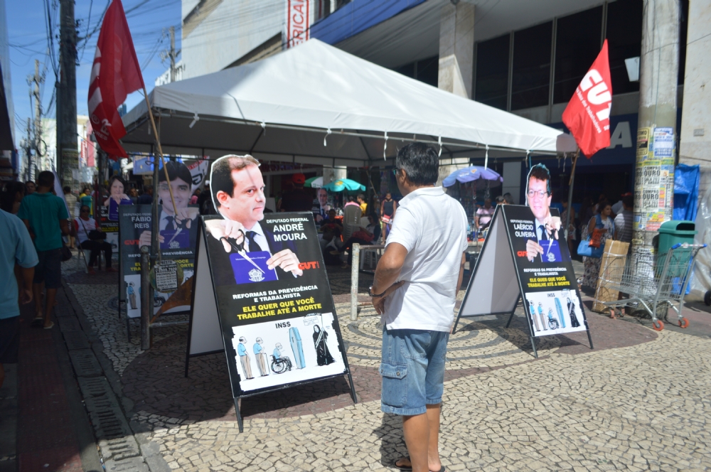 Representantes da Central única dos Trabalhadores (CUT) e União Geral dos Trabalhadores (UGT), que fazem parte da Frente Brasil Popular, fizeram um ato público contra a Reforma Trabalhista, que está sendo votada nesta terça-feira, 11, pelo Senado Federal. Eles montaram uma tenda no calçadão da Rua João Pessoa para acompanhar a votação.