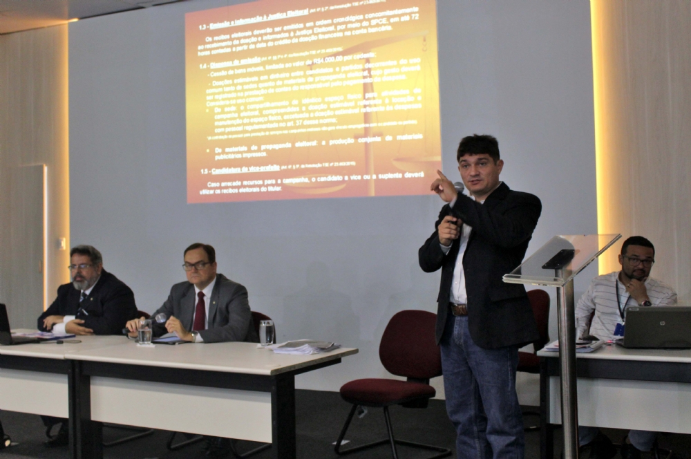 O chefe da Seção de Exame de Contas Eleitorais e Partidárias, Veroni Júnior Caetano de Oliveira, o Conselheiro do CRC/SE e membro da Comissão Nacional de Contabilidade Eleitoral do Conselho Federal de Contabilidade, Elson Amorim Simões e o Vice-Presidente do Conselho Federal de Contabilidade, Aécio Prado Dantas Júnior, discorreram sobre as normas para o financiamento de campanha, gastos eleitorais e sobre a prestação de contas dos partidos e candidatos. Na oportunidade, as novas regras introduzidas pela legislação eleitoral foram apresentadas, em especial a proibição de doação por parte de pessoas jurídicas, a obrigatoriedade de comunicação à Justiça Eleitoral, em até 72 horas, de todas as doações financeiras recebidas, bem como os novos limites de gastos.