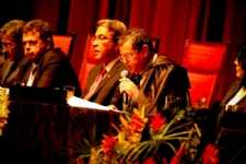 O governador Marcelo Déda foi o primeiro a ser diplomado. Muito aplaudido, ele beijou o diploma e