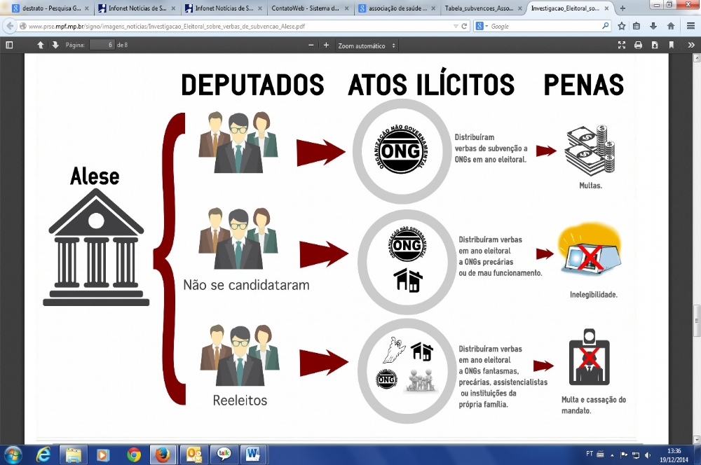 Há suspeita, conforme a denúncia do MPF, que cerca de R$ 12 milhões foram repassados para entidades fantasmas ou que estariam funcionando com estrutura precária desenvolvendo ações de assistencialismo, festas ou a entidades geridas por familiares dos próprios parlamentares. Na ótica da Procuradoria Regional Eleitoral, estes procedimentos são proibidos pela legislação eleitoral.