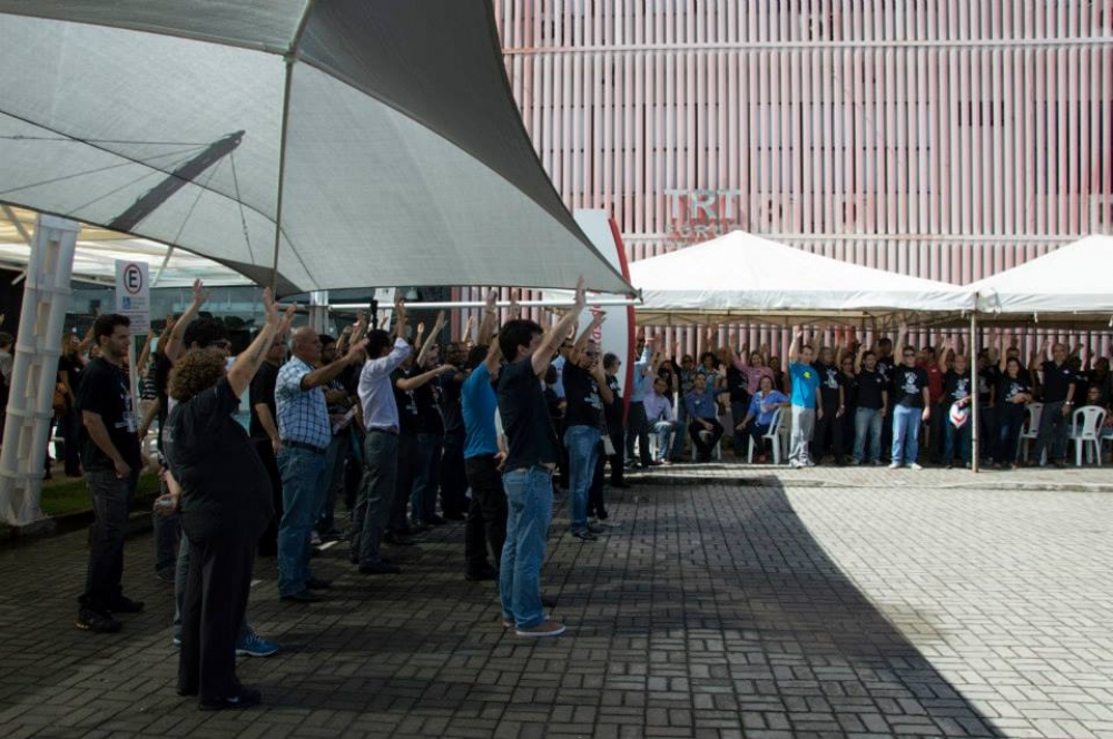 Na manhã desta quarta-feira, 10, servidores federais realizaram um ato em frente ao Tribunal Regional do Trabalho (TRT), para pressionar a votação do projeto de lei da 28/15 que incide sobre a recomposição das perdas salariais.