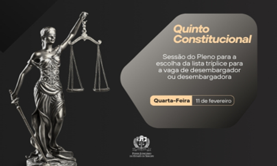 A presidência do Tribunal de Justiça de Sergipe (TJSE) informa que a sessão para a escolha da lista tríplice para a vaga de desembargador ou desembargadora do quinto constitucional, decorrente da aposentadoria do desembargador Luiz Mendonça, está marcada para o Pleno do dia 11 de fevereiro.