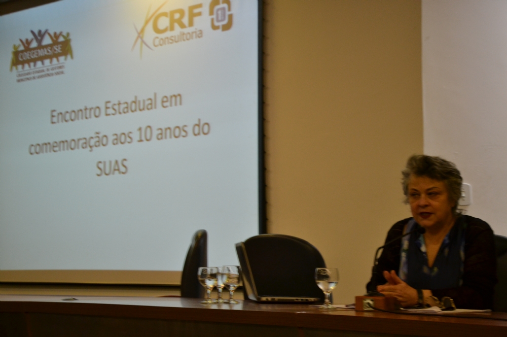 O evento foi articulado pelo Coegemas com o objetivo de refletir os dez anos de implantação do Sistema Único de Assistência Social (SUAS). Na palestra, a professora destacou a mobilização dos profissionais sergipanos em defesa de um modelo único para o país, e fez menção ao documento redigido na capital sergipana durante a gestão de Marcelo Déda na Prefeitura de Aracaju. “Foi aqui em Aracaju que tivemos uma síntese para a construção do sistema único. Marcelo Déda era conhecedor da construção do sistema único de saúde e nos sugeria caminhos importantes de um sistema único de direitos”, enfatizou Sposati.