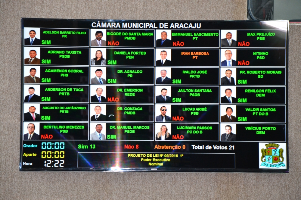 | Placar da votação final (Fotos: Cássia Santana/Portal Infonet) |