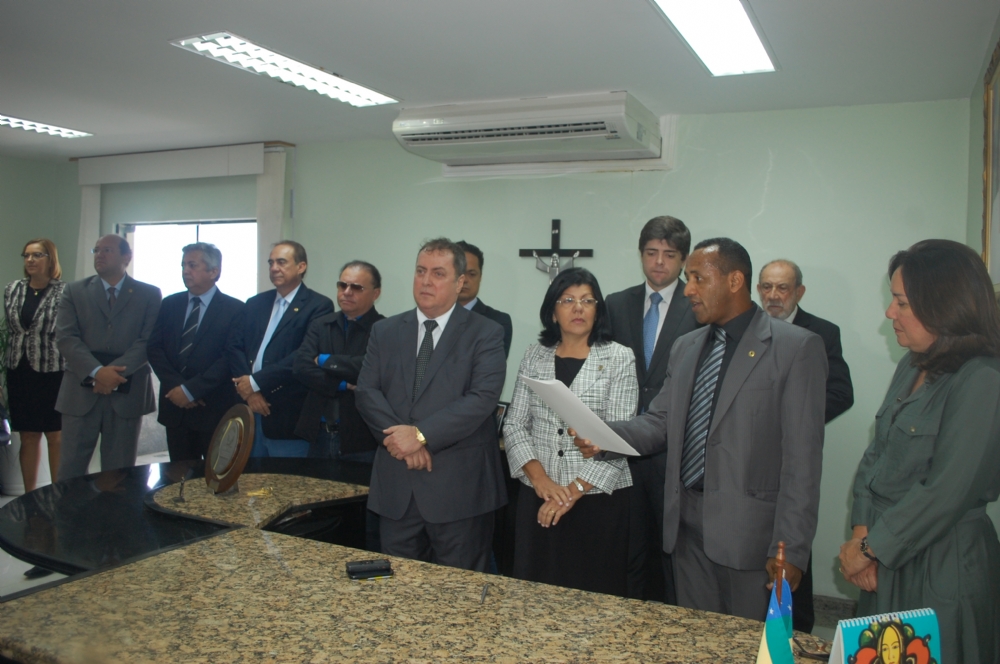Numa solenidade concorrida, o Termo de Transmissão Temporária do Cargo foi assinado na presença de deputados da situação e da oposição, além de familiares e amigos de Zé Franco.